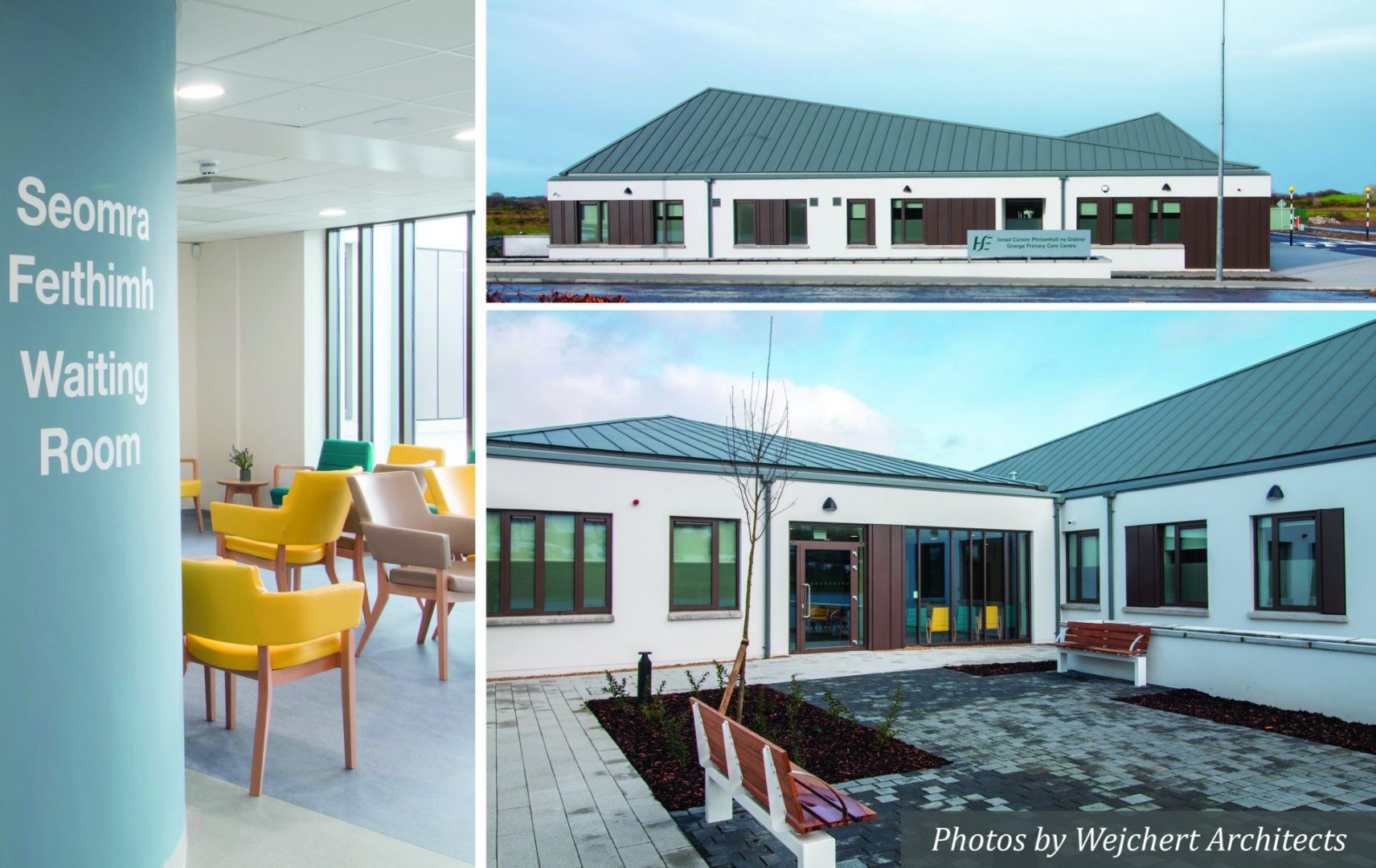 This new modern Primary Healthcare Facility in the Grange is a single-storey 9860 sq. ft building. It features all necessary staff rooms and offices, open reception area with a waiting room, GP and nurses’ rooms, therapy rooms, a physio gym and physio treatment rooms.