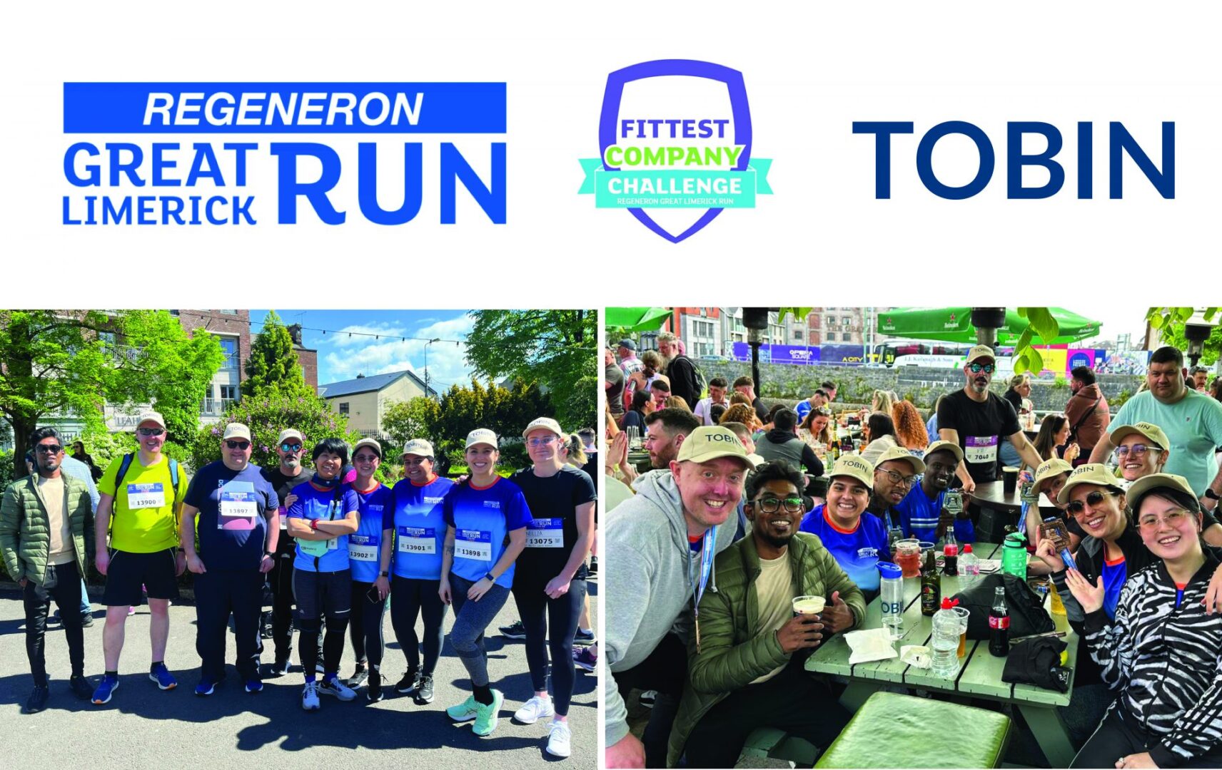 TOBIN team members are celebrating a great result in winning 3rd place in the Fittest Company Challenge (medium-sized companies category) in the Great Limerick Run on Sunday 5th May. This is a great reward for the twelve TOBIN runners who took part across the Marathon, Half-Marathon and 6 Mile races, which had in total over 10,000 runners taking part.
