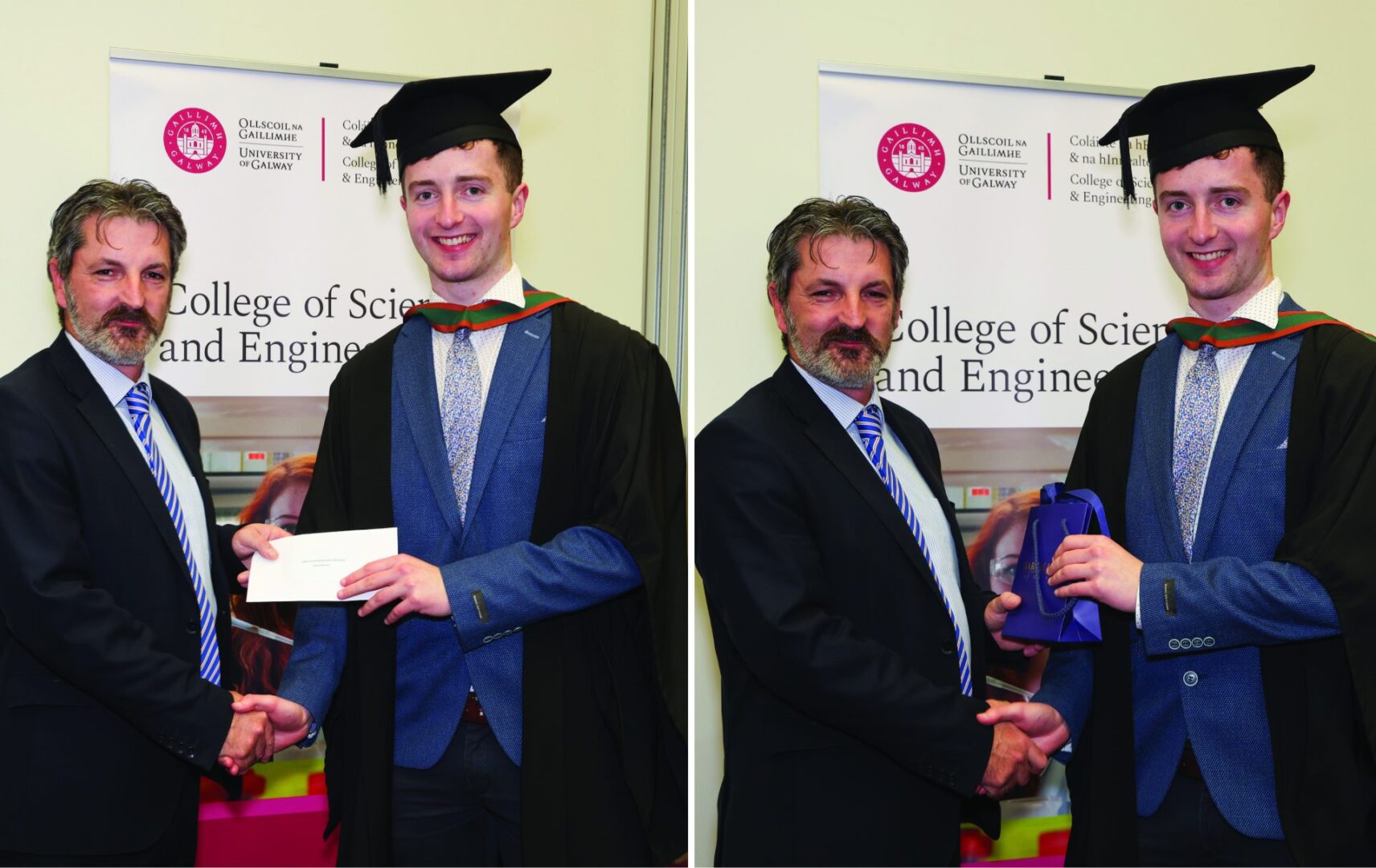 Director Michael John McDonnell is pictured here with student Richard Barron, who received not just one, but two awards at the recent engineering awards ceremony at University of Galway.