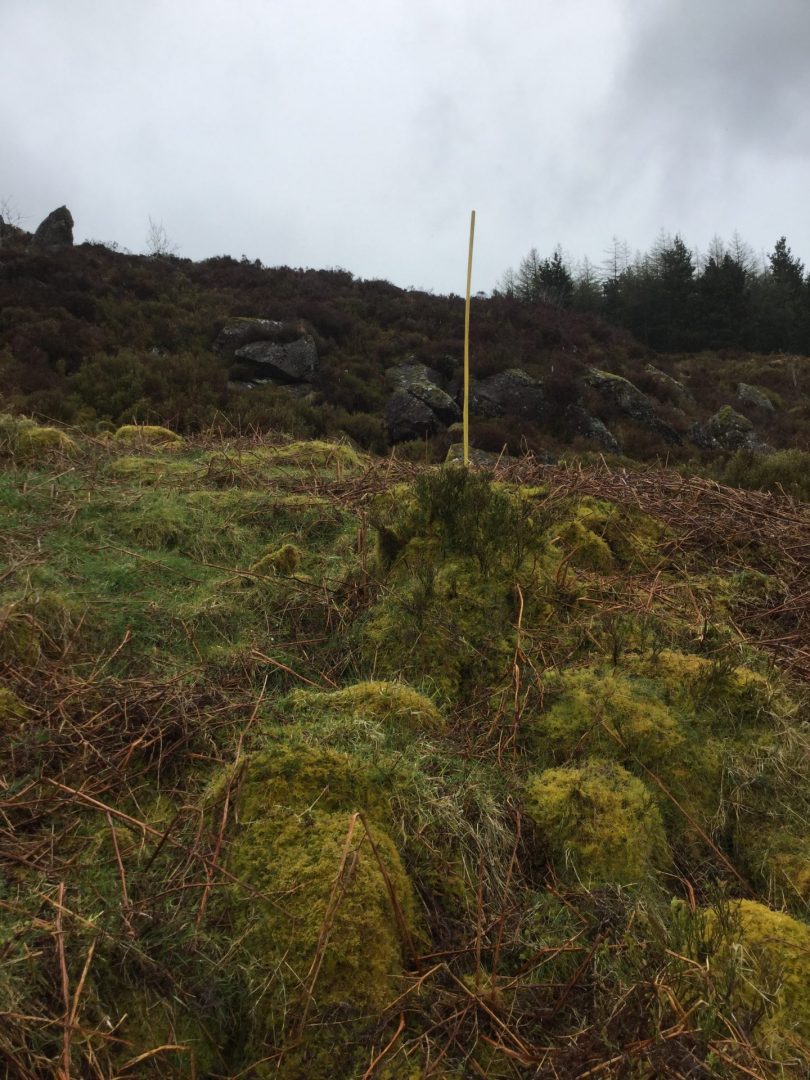 Existing trackways and brashing will be used to minimise the destruction of habitats. Delivery of the met mast, erection and de-commissioning works will avoid periods of high rainfall, ideally during the drier summer/autumn months, as per standard good practice. This will minimise any potential runoff to nearby streams. Limited soil disturbance will be required; At each of the three guy wire locations, ground works involving the anchoring of the guys to the bedrock will result in disturbance to an area of 0.75 – 1 m2 of the surface vegetation and subsoil. When the mast is lifted into position and all guy wires secured the site will be cleared, ensuring that all tools have been collected and, where possible, the site is left in the same condition it was found.