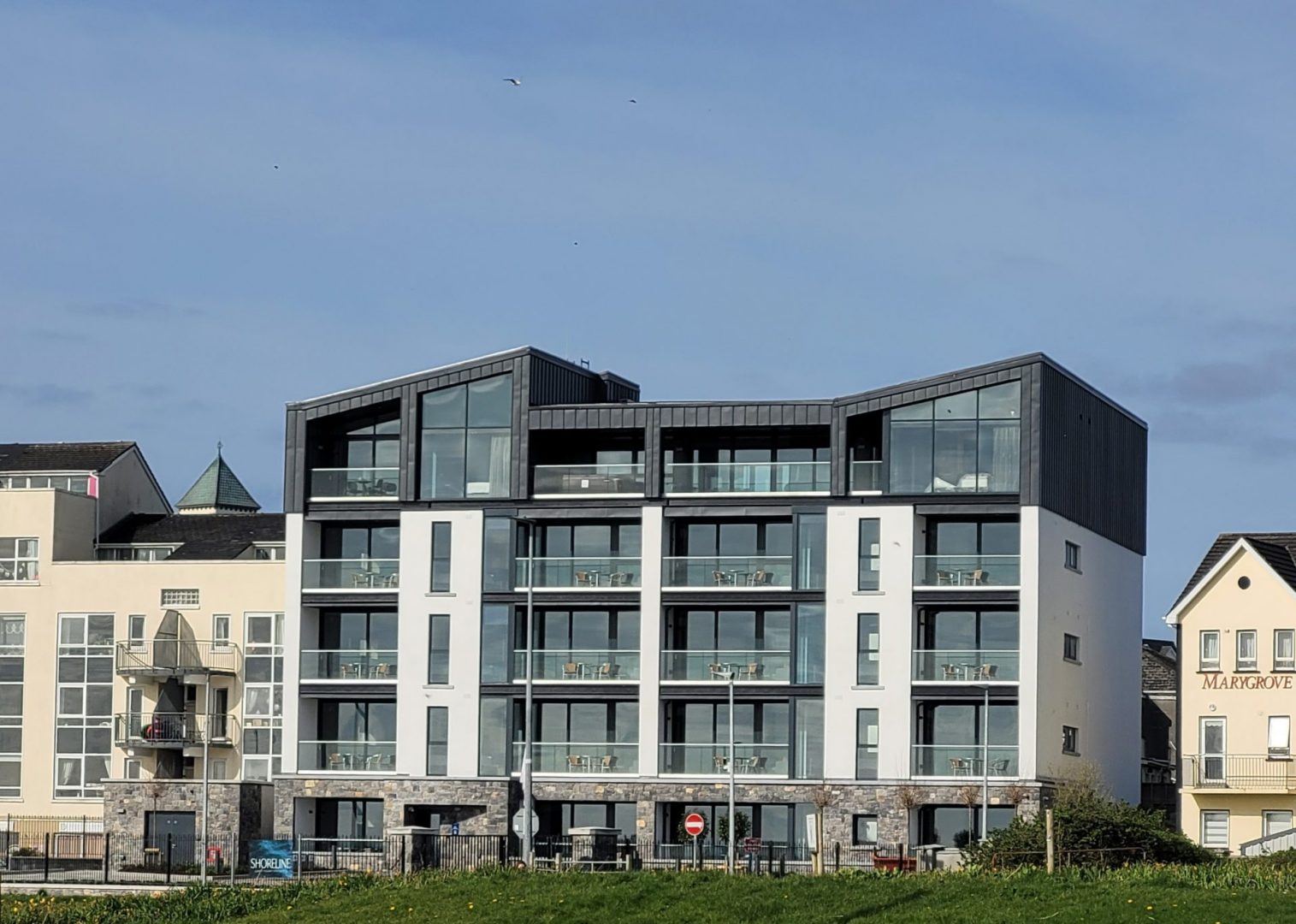 This project consisted of the demolition of the two existing ‘Marine View’ two-storey apartment blocks and the construction of a new five-storey apartment block and ancillary structures including a refuse compound, bicycle shed and comms room. The site is located on Quincentennial Drive adjacent to the promenade in Salthill.